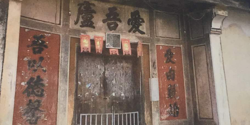The horizontal scroll at the top reads 愛吾盧 which means ‘love my home’. The vertical couplet on both sides of the door reads 愛由親始,吾以德馨, which means ‘love begins with the family’, and ‘by my virtue I’m esteemed’.